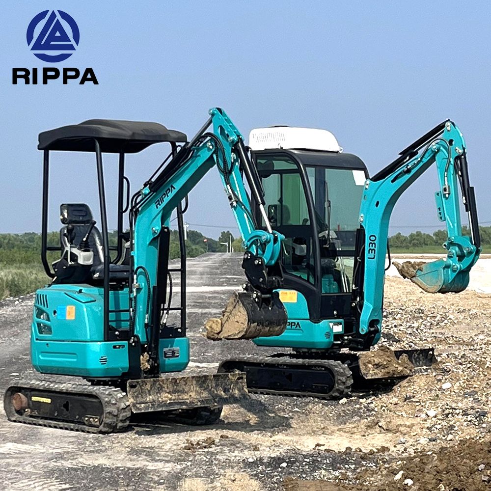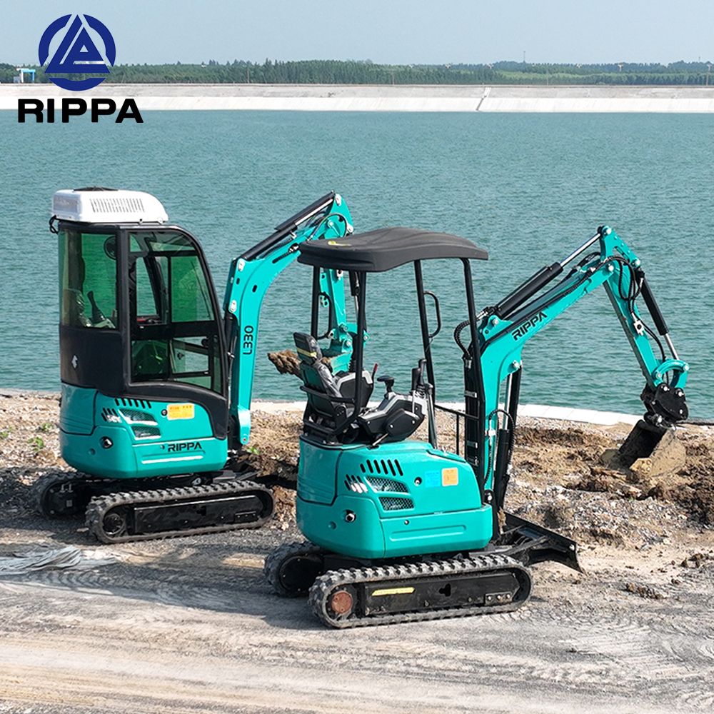 Rippa L330 Cab Mini Excavadora 2 Ton. El ancho mínimo de la oruga es de 1100 mm, y la oruga se puede ampliar a 1500 mm. El mango del piloto hidráulico es más sensible y suave que el funcionamiento de la máquina. La operación a dos manos es flexible y portátil, y la acción es sensible, y puede hacer 4 al mismo tiempo. Tiene muchas ventajas como basculante, pista alargada, alta y baja velocidad, etc. El engranaje del motor giratorio adopta la tecnología spline, que transmite un gran par y no es fácil de dañar. Agregue orificios de drenaje de aceite para evitar fugas de aceite.