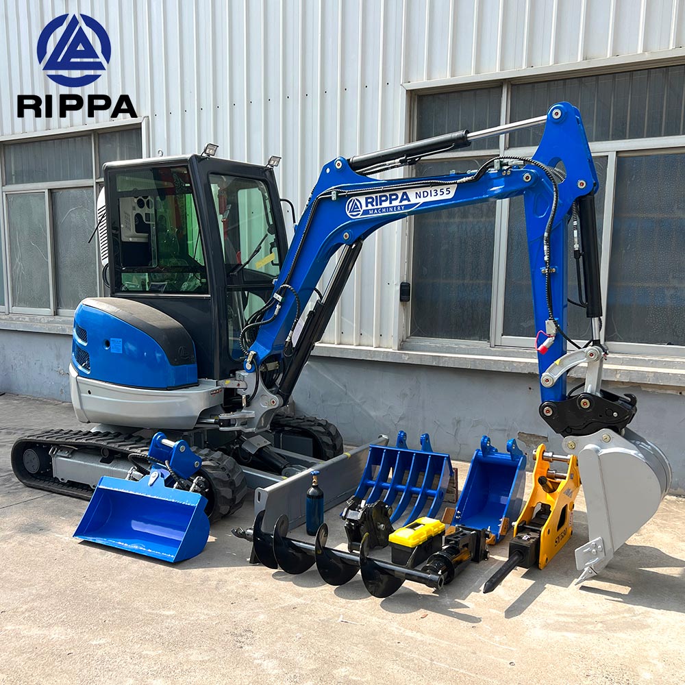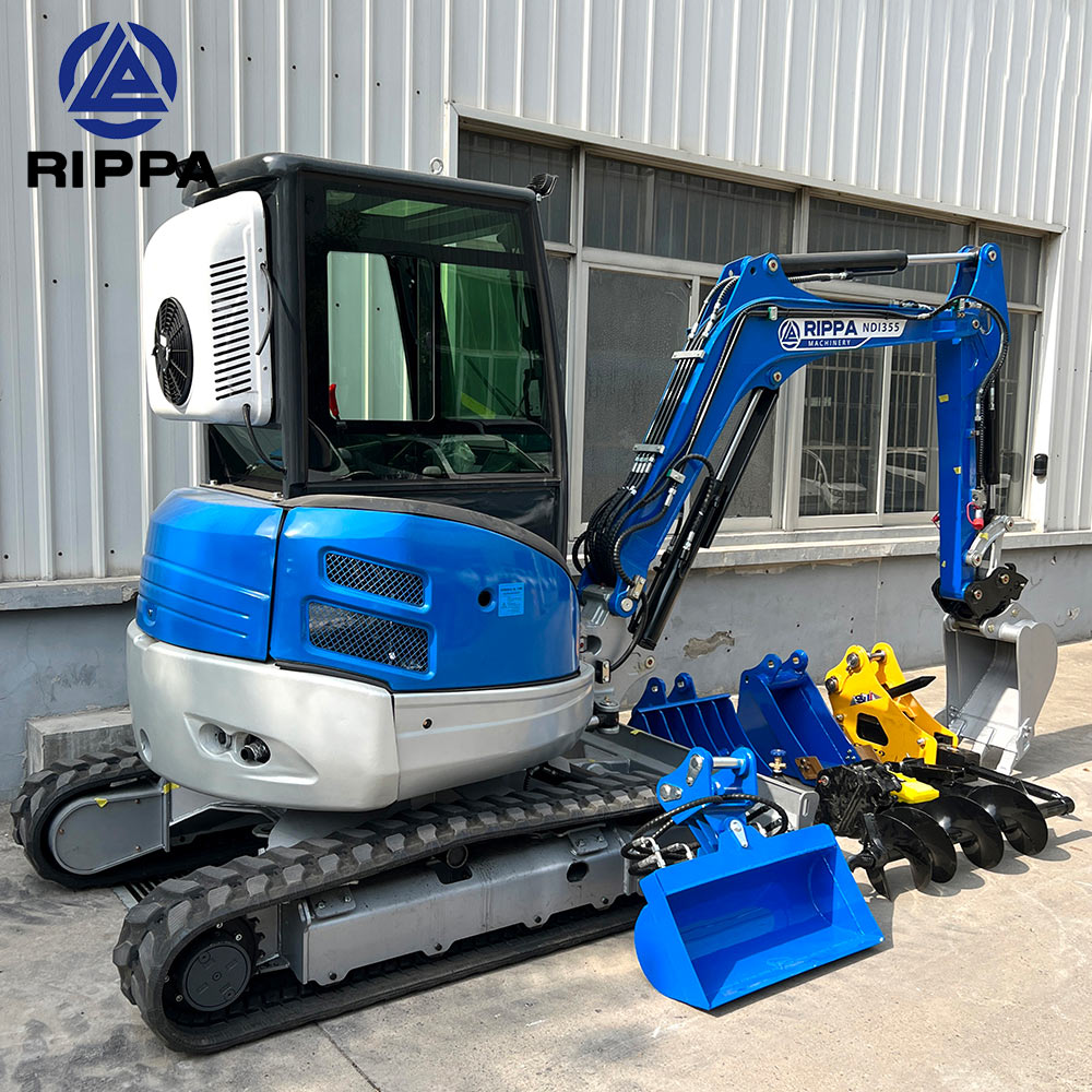 El modelo mejorado NDI355 de la miniexcavadora Rippa R355 es de hecho una herramienta versátil y potente que encuentra amplias aplicaciones en invernaderos, paisajismo interior y en las industrias de la construcción. El motor Kubota de cuatro cilindros proporciona estabilidad, eficiencia de combustible y potencia suficiente para diversas tareas. La pluma desviable con múltiples grados de libertad y un gran ángulo de deflexión mejora la flexibilidad de las operaciones, facilitando las maniobras en espacios reducidos o el manejo de tareas complejas.