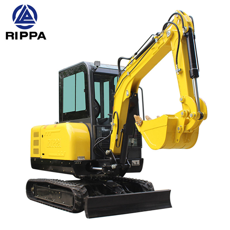 Rippa R350 mini excavadora sobre orugas hidráulica 3.5 ton. La cabina está equipada con vidrio templado de alta resistencia de gran área para garantizar la resistencia y mejorar la visión. El techo de la cabina está equipado con focos para garantizar un funcionamiento preciso y seguro por la noche.mini embolsadora es pequeña y extremadamente buena, más cómoda y segura,